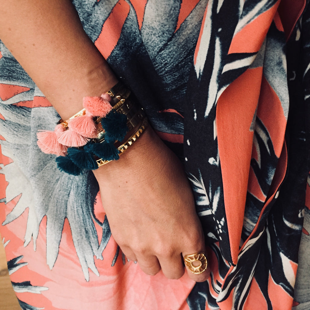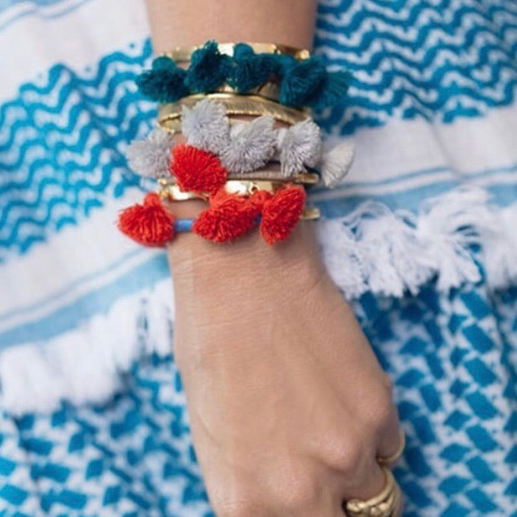 The Raquel Tassel bracelet, fun and the perfect holiday companion. Perfect on its own or wear with your other bangles, the more the merrier!