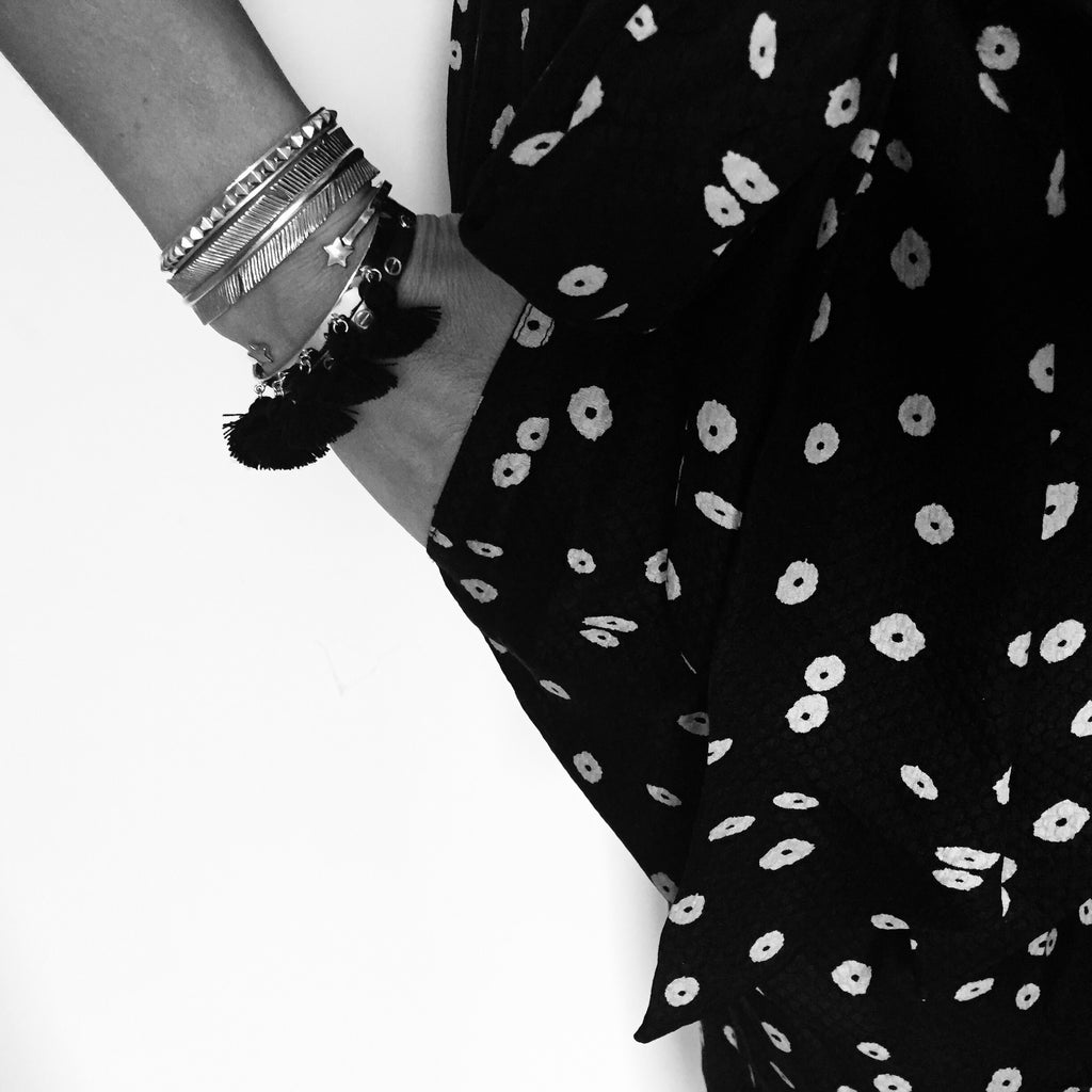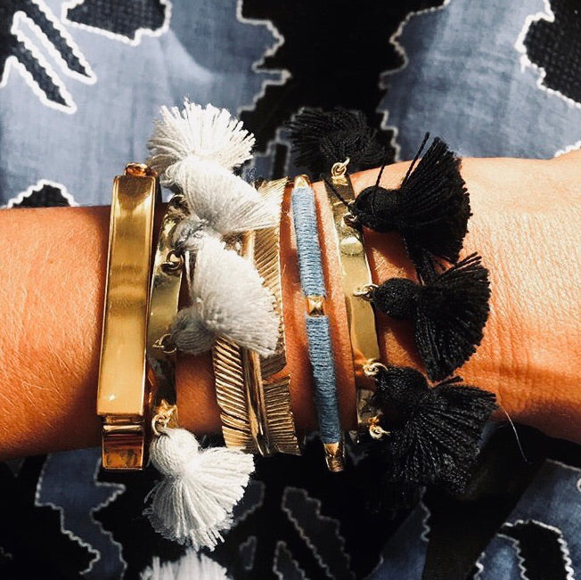 The Raquel Tassel bracelet, fun and the perfect holiday companion. Perfect on its own or wear with your other bangles, the more the merrier!