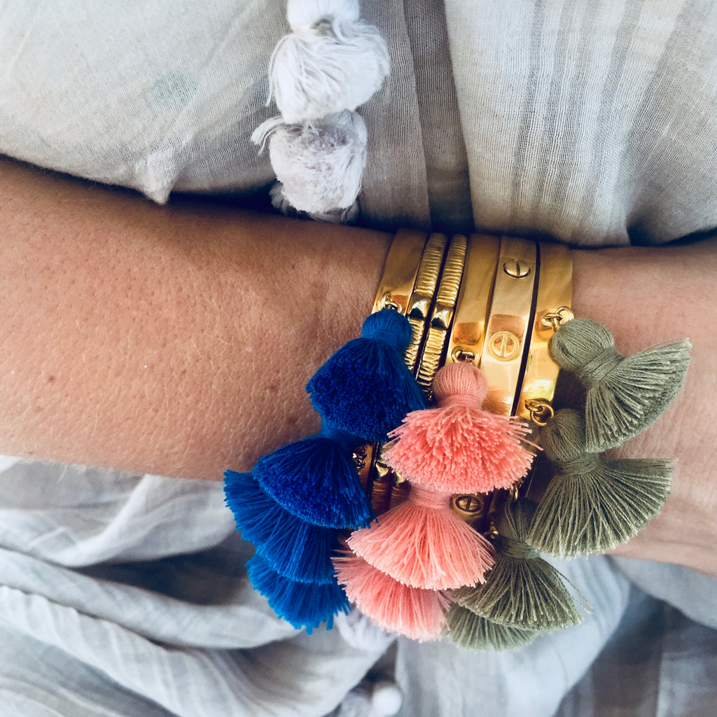 The Raquel Tassel bracelet, fun and the perfect holiday companion. Perfect on its own or wear with your other bangles, the more the merrier!