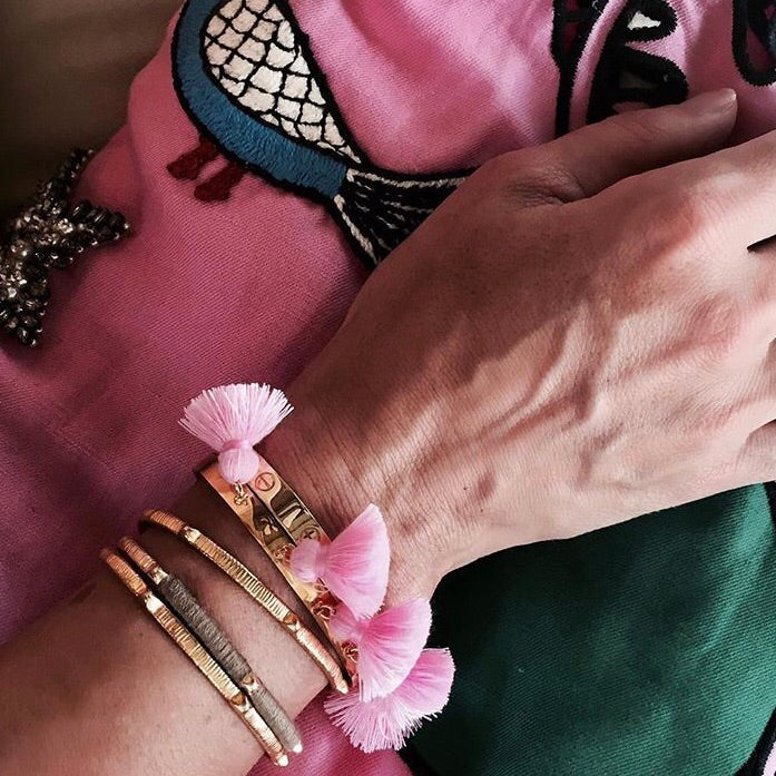 The Raquel Tassel bracelet, fun and the perfect holiday companion. Perfect on its own or wear with your other bangles, the more the merrier!