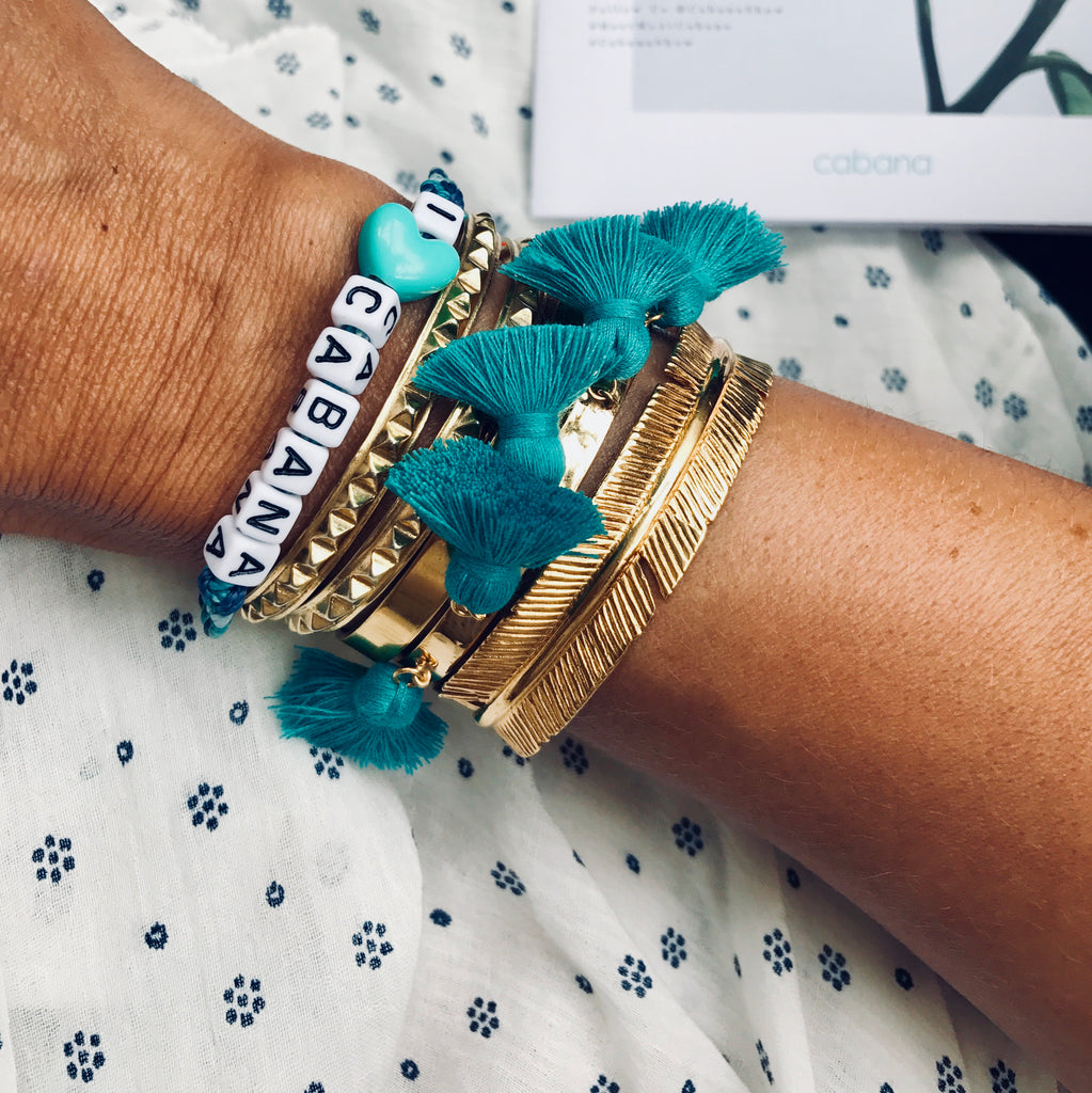 The Raquel Tassel bracelet, fun and the perfect holiday companion. Perfect on its own or wear with your other bangles, the more the merrier!