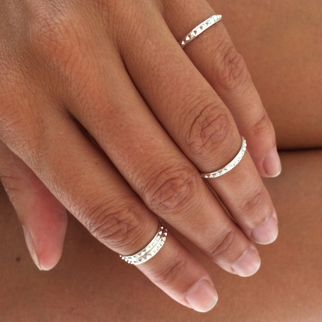 The Simone with its mini pyramids is so easy to wear, stack with others or wear by itself.
