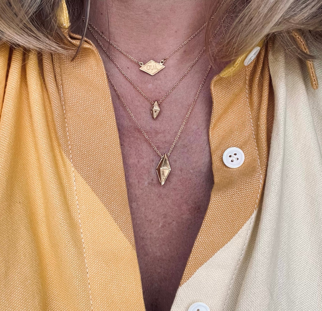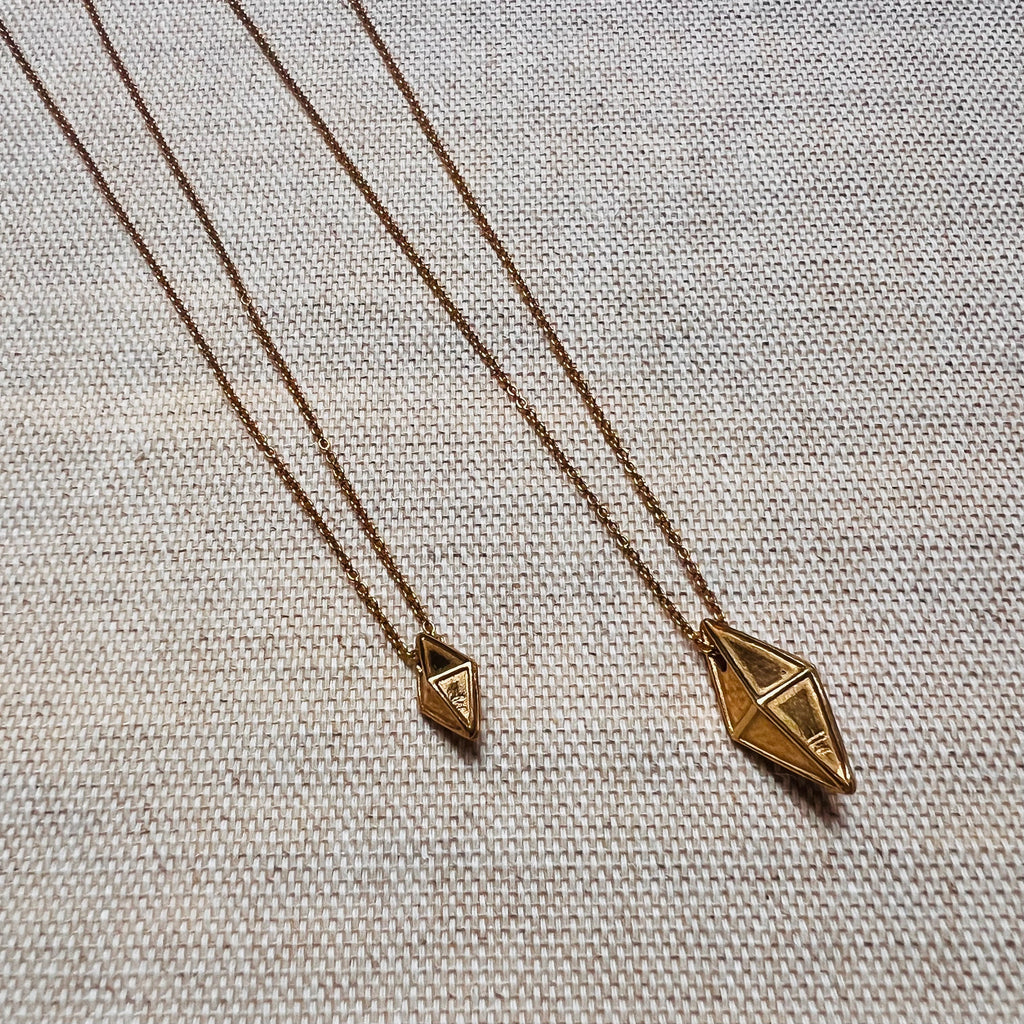 We love the feel of this necklace, its octahedral pendant giving it a geometric flair.