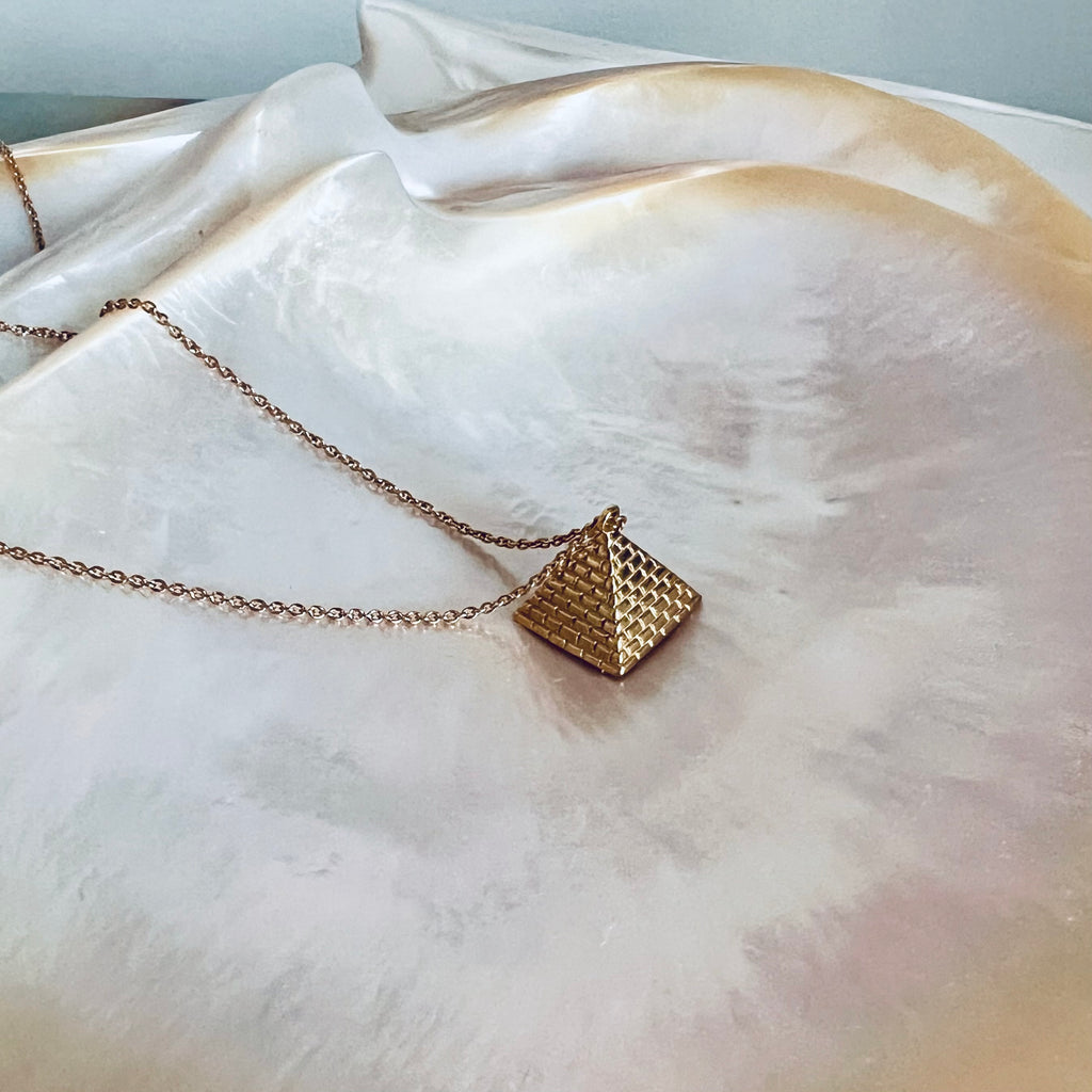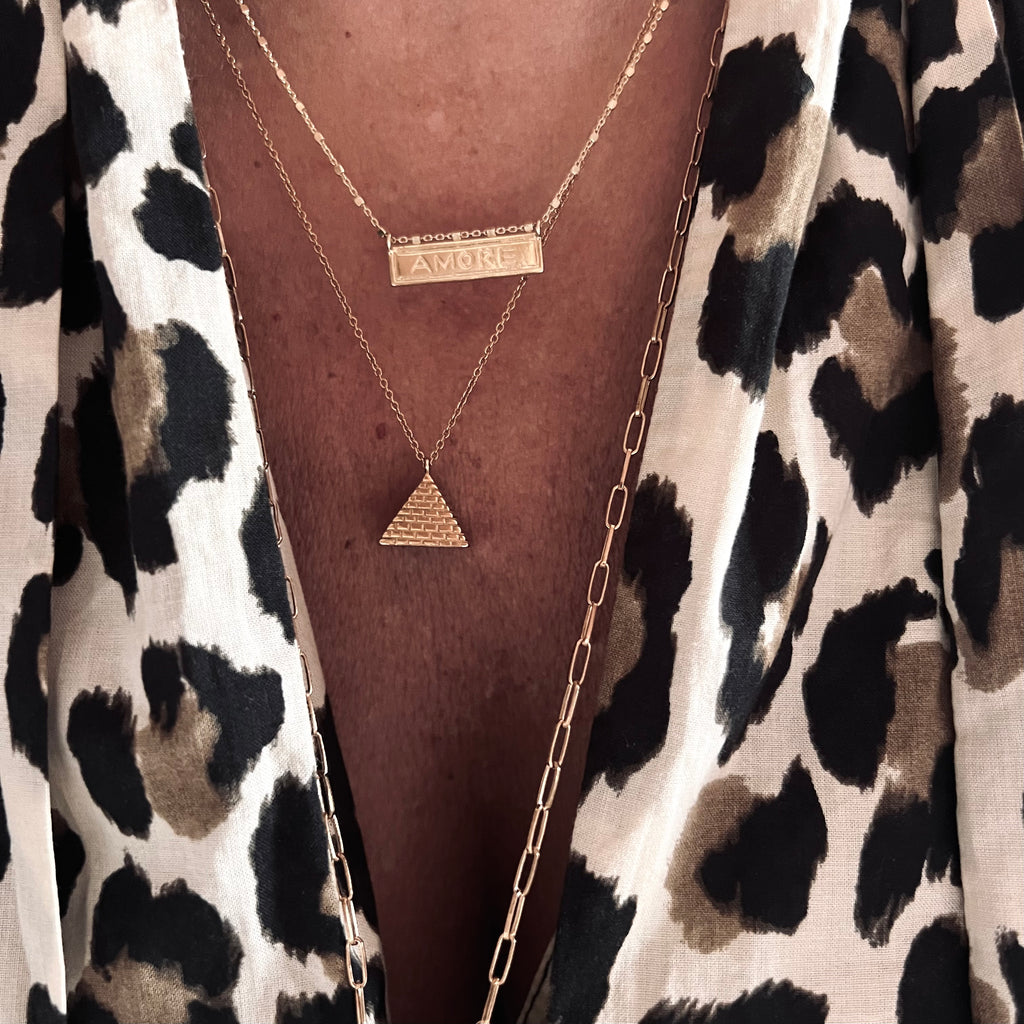 The Yana necklace features a lovely pyramid charm on our signature cable chain.