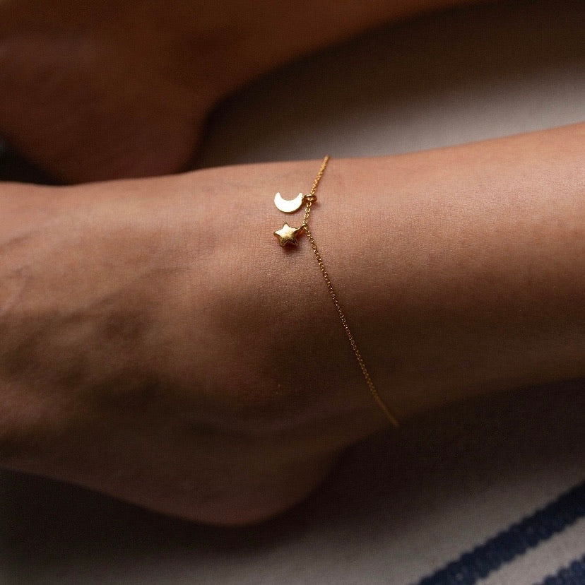 A little treasure of an anklet with a moon and a star charm. The perfect summer accessory!