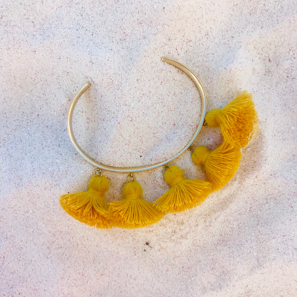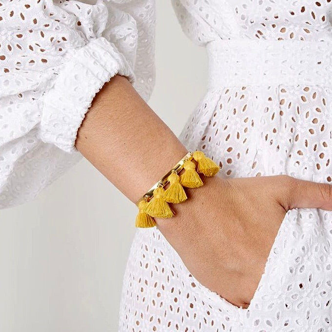 The Raquel Tassel bracelet, fun and the perfect holiday companion. Perfect on its own or wear with your other bangles, the more the merrier!