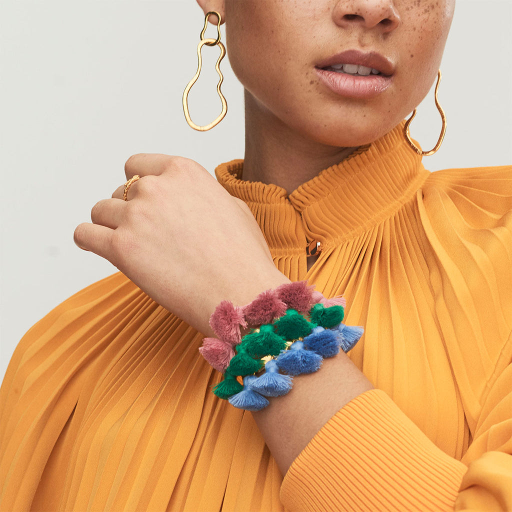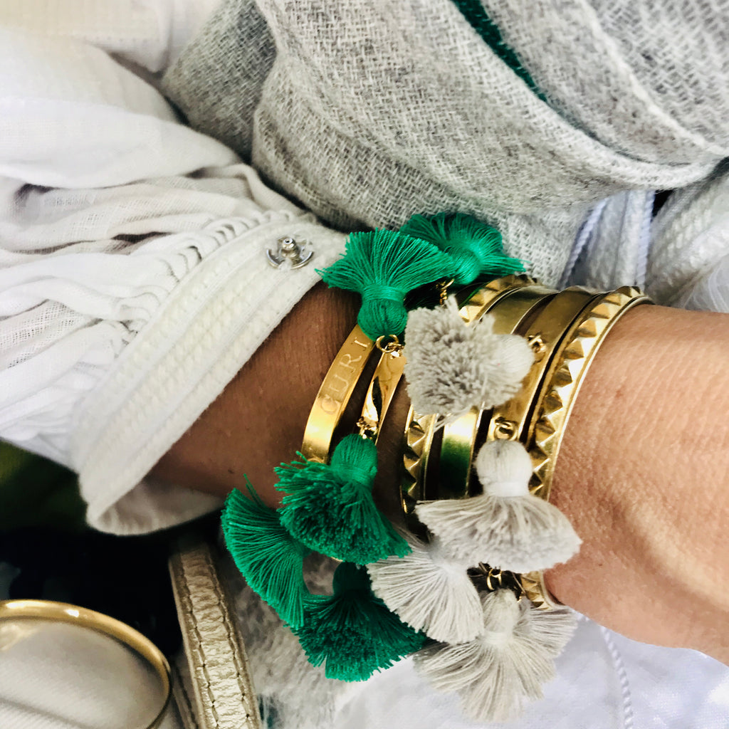 The Raquel Tassel bracelet, fun and the perfect holiday companion. Perfect on its own or wear with your other bangles, the more the merrier!