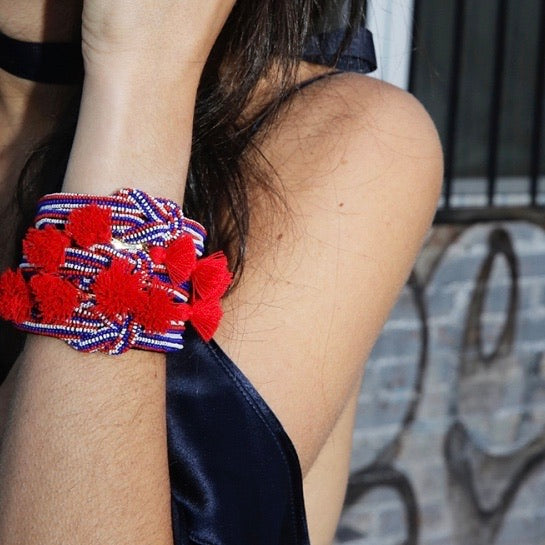 The Raquel Tassel bracelet, fun and the perfect holiday companion. Perfect on its own or wear with your other bangles, the more the merrier!